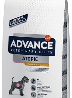 Advance Veterinary Diet Dog Atopic Gevoelige Huid Graanvrij/Derma 12 kg is een compleet en uitgebalanceerd dieetvoer voor volwassen honden, ontwikkeld om de huid van je hond te verzorgen als deze dermatitis en overmatig haarverlies heeft. Ook geschikt om intoleranties voor ingrediënten en voedingsstoffen te verminderen. Graanvrij en met konijn als enige bron van dierlijke eiwitten, verlaagt dit voer het risico op bijwerkingen van voedsel en helpt het de huid van honden met atopische dermatitis te beschermen.