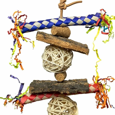 De Back Zoo Nature Corky Finger Traps is een veelzijdig vogelspeeltje met een mix van natuurlijke materialen zoals kurk, kurkschors, leer, gevlochten balletjes en papieren vingervallen. De verschillende lagen, structuren en kleuren nodigen uit tot ontdekken, knabbelen en spelen. In de gevlochten balletjes kunnen snacks worden verstopt, waardoor het speeltje ook gebruikt kan worden als foerageerspeeltje. Dit sluit aan bij het natuurlijke gedrag van vogels om actief op zoek te gaan naar voedsel. De Corky Finger Traps is eenvoudig op te hangen en zorgt voor afwisseling en verrijking in het vogelverblijf.