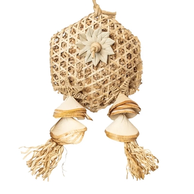 De Back Zoo Nature Funny Flower is een natuurlijk vogelspeeltje uit de Pure-lijn, gemaakt van materialen zoals zeegras en karton. Het speeltje biedt ruimte om snacks of voeding te verstoppen en sluit aan bij het natuurlijke foerageer- en sloopgedrag van kromsnavels. De bloemvorm en verschillende structuren nodigen uit tot ontdekken en knabbelen en zorgen voor afwisseling in de vogelkooi. Dankzij de quicklink is de Funny Flower eenvoudig op te hangen. Omdat het om natuurlijke materialen gaat, is elk exemplaar uniek in vorm en uitstraling.