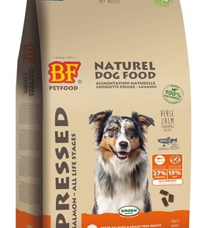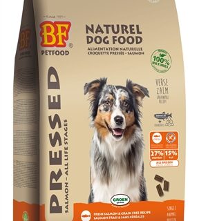 De BF Petfood Geperst Zalm Graanvrij 13,5 kg is volledig hondenvoer voor honden van alle leeftijden, koud geperst, hypoallergeen en geheel graanvrij. Gun jouw hond het beste met deze geperste brokken van BF Petfood! Is jouw hond jong, oud, gevoelig of actief of juist niet? Elke hond zal de voordelen ondervinden van deze hoogwaardige, volledige premium hondenvoeding. BF Petfood Geperst Zalm Graanvrij is koud geperst en gemaakt met lekker veel Schotse Zalm, een hoogwaardig ingrediënt dat huid en vacht én de spijsvertering ondersteunt. Bovendien is zalm de enige dierlijke eiwitbron van dit voer: ideaal voor honden die reageren op andere dierlijke eiwitten. Voor alle honden, maar ook geschikt voor gevoelige honden dus! Uiteraard is het voer graanvrij, en de verhitting van de brok zorgt voor lagere maagbelasting en zo voor een hoge verteerbaarheid. Ook blijven bij het persen de vetten, eiwitten, vitaminen en mineralen optimaal gewaarborgd door de lage verhitting. Zo weet je zeker dat jouw hond alles binnen krijgt wat hij nodig heeft. Nederlandse topkwaliteit!