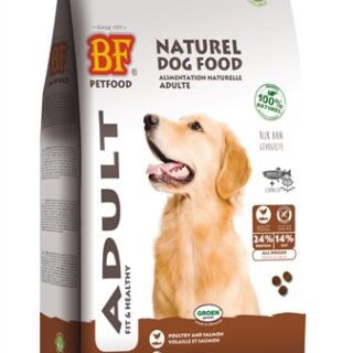 BF Petfood Adult Krokant 3 kg is een volledige licht verteerbare, natuurlijke en zeer smaakvolle hondenvoeding voor alle rassen. BF Petfood (voorheen Biofood) Adult Krokant bevat gevogelte, rund, wild zwijn en zalm. Met zalmolie, schapenvet, rijst en kruiden. Tarwevrij. Hoge acceptatie en verteerbaarheid. Zalmolie met essentiële omega 3 vetzuren ondersteund huid, vacht, vitaliteit en weerstand. De toegevoegde echinacea kruiden ondersteunen het afweersysteem. De natuurlijke bronnen van eiwitten en vetten zijn van hoge kwaliteit. Deze zorgen voor een betere vertering, ontlasting en een goede conditie van jouw hond. Deze voeding is geschikt voor alle hondenrassen.