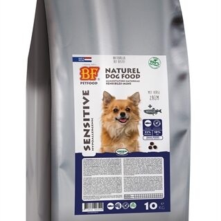 BF Petfood Sensitive Small Breed in 1,5 kg is een volledige, hoogwaardige natuurlijke hondenvoeding voor de voedingsgevoelige of kieskeurige eters van kleine rassen. Dit lekkere voer is gemaakt met zalm, erwten, groenten en fruit, wat voor een hoge acceptatie zorgt. Door het gebruik van enkel gedroogde zalm als dierlijke eiwitbron is het voer hypoallergeen en daardoor ideaal voor moeilijke eters en dieren met voedselintolerantie. Inuline FOS stimuleert de darmflora en de gezondheid en toegevoegde zalmolie zorgt voor een mooie, gezonde huid en vacht. Omdat het voer de geur en het volume van de ontlasting beperkt, is het ideaal voor zowel baas als hond!