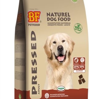 BF Petfood (voorheen Biofood) geperst adult is een volledige, natuurlijke en zeer smaakvolle geperste hondenvoeding die geschikt is voor alle hondenrassen. Deze koud geperste BF Petfood brok bevat hoogwaardige natuurlijke grondstoffen en de optimale dagelijkse hoeveelheid eiwitten, vetten, koolhydraten, vitaminen en mineralen die bijdragen tot een goede gezondheid van jouw hond. Bij de bereiding wordt gebruik gemaakt van rund, kip en wild zwijn.
