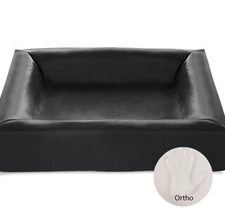 Het Bia Bed Hondenmand Orthopedisch Zwart Bia-2 60X50X12,5 cm is een hondenbed met orthopedische vulling wat de druk op de gewrichten verminderd. BIA Ortho is ideaal bij chronische (gewrichts-)aandoeningen zoals artrose. Het is een druk verlagend bed, wat gewrichtspijnen verminderd. De bodem van het bed bestaat uit twee stukken polyether. De bovenste laag vormt zich naar het lichaam en op deze manier zorgt het voor een verlichting van de drukpunten bij de heupen, knieën en schouders. De onderste laag voorkomt het doorzakken van het bed. Door deze combinatie verdeelt BIA Ortho het lichaamsgewicht gelijkmatig, wat spier- en gewrichtspijnen verlicht. Het bed is overtrokken met kunstleder.