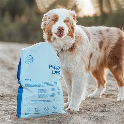 Buddy Puppy Love 2 kg is een smakelijke en complete hondenvoeding voor pups vanaf 4 weken oud. Met 80% dierlijke ingrediënten en 20% groente, fruit en superfoods, biedt deze graanvrije voeding de eiwitten en voedingsstoffen die jouw opgroeiende hond verdient. Met heerlijke verse kalkoen en zalm!