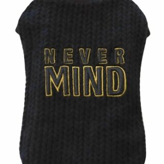 De Croci Hondentrui Nevermind Zwart van 35 cm is een stoere hondentrui van zachte fleecewol, met gouden ingenaaide print, kraagje en mouwtjes. Heerlijk voor binnenshuis en droge, minder koude dagen thuis! Deze trui heeft een klassiek doch stoere uitstraling met zijn banen geweven fleecewol. De gouden ingenaaide print met de tekst 'nevermind' geeft hem toch weer even een hedendaags tintje. De trui is voorzien van een kraagje en mouwtjes en heeft een fijne pasvorm door de banden bij de achterpoten en het elastisch buikdeel. Te gebruiken met halsband en looplijn.