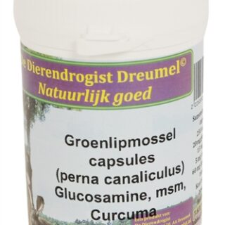 Dierendrogist Groenlipmossel Met Glucosamine / MSM / Carcuma 50 st is een voedingssupplement voor huisdieren om beschadigde gewrichten weer optimaal te laten functioneren.