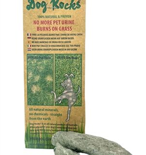 Dog Rocks houden jouw gazon stralend groen! Altijd een prachtig groen gazon en nooit meer gele vlekken en kale plekken als de hond op het gras plast? Dat kan met Dog Rocks, een innovatief en 100% natuurlijk product dat voorkomt dat urine brandvlekken in het gras veroorzaakt. Dog Rocks zijn stukjes vulkanisch gesteente bestaand uit natuurlijke mineralen, die in de waterbak van de hond worden gelegd. Bij juist gebruik zorgt de filterende en zuiverende werking van de stenen ervoor dat lelijke plekken in het gazon, die ontstaan door overmaat aan nitraten in urine, voortaan worden voorkomen. Iedere 2 maanden de stenen vervangen zorgt voor een blijvend mooi resultaat.