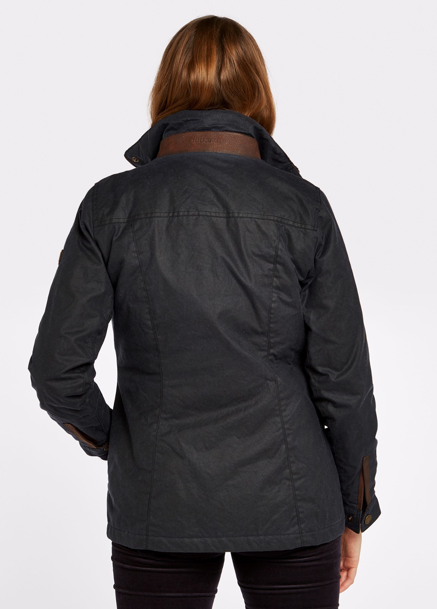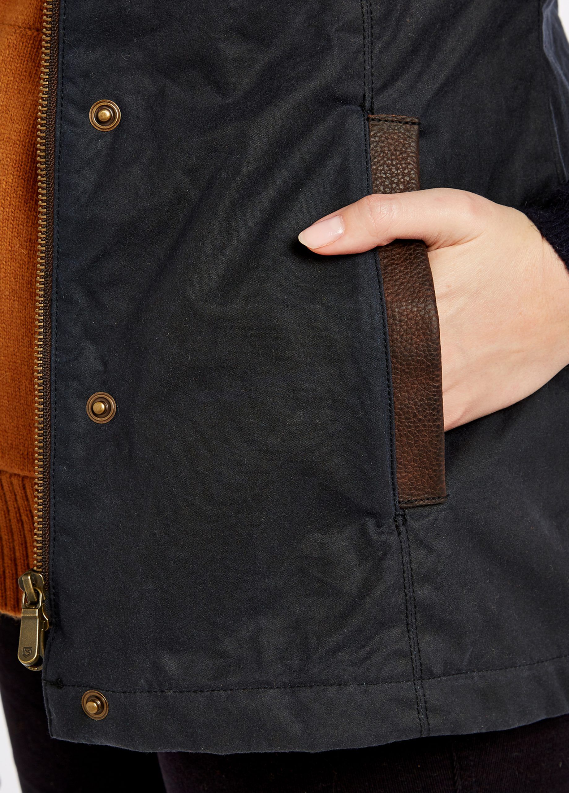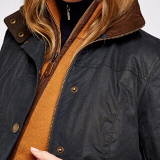 Dames waxjas met leren details (Approx. Centre back length: 72cm for a Size 38/12)