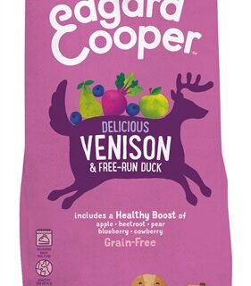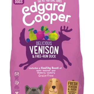 Edgard & Cooper Adult Verse Hert / Scharreleend Graanvrij 7 kg is een smakelijk, volledig droogvoer voor de hond, met verse eend en hert en een gezonde mix van fruit, groenten en kruiden. Een zeer compleet voer voor jouw hond met een heerlijke smaak! Dit voer is gemaakt volgens graanvrij recept met vers vlees, dus zonder gedroogd en gedehydreerd vlees. Het eendenvlees is afkomstig van scharreleenden, en dus gelukkigere, gezondere eenden! Het voer is rijk aan hoogwaardige eiwitten: er is ook zoete aardappel aan toegevoegd als duurzame energieleverancier. Verder bevat deze brok een mix van fruit, groenten en kruiden voor een extra boost. De aanwezigheid van prebiotica zorgt voor een gezonde darmwerking en bovendien is het voer hypoallergeen, dus geschikt voor honden met een gevoelige maag! Deze brokken zijn langzaam gebakken zodat er zoveel mogelijk voedingsstoffen én smaak behouden zijn gebleven.