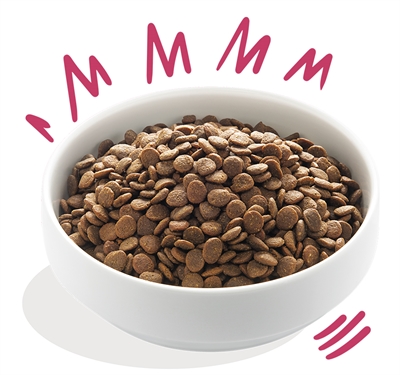 Analytische bestanddelen: ruw eiwit 25%, ruw vet 15%, ruwe celstof 3%, ruwe as 8,4%, omega-6-vetzuur 1,45%, omega-3-vetzuur 0,8%, calcium 1,1%, fosfor 0,8%