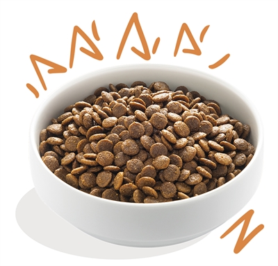 Analytische bestanddelen: ruw eiwit 25%, ruw vet 18%, ruwe celstof 4,5%, ruwe as 6,9%, omega-6-vetzuur 2,2%, omega-3-vetzuur 0,8%, calcium 1,1%, fosfor 0,8%.