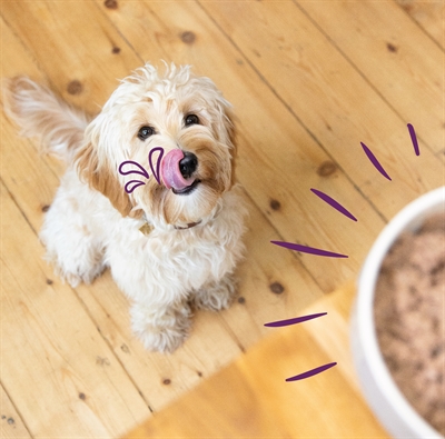 - Wild en eend: wild 30%, eend 26%, mineralen, wortels 2%, bataten 1%, rode bieten 1%, cranberry's 1%, appels 1%, peterselie 0,1%, dille 0,1%