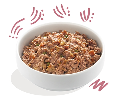 Samenstelling: eend 30%, kip 26%, mineralen, wortels 2%, broccoli 1%, appels 1%, pompoen 1%, erwten 1%, zalmolie 0,5%, peterselie 0,1%, dille 0,1%