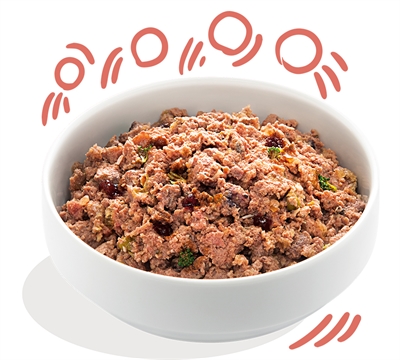 Samenstelling: kip 37%, zalm 30%, erwten 2%, broccoli 2%, mineralen, boerenkool 0,5%, mannan-oligosachariden, lijnzaad 0,25%, zalmolie 0,2%, fructo-oligosachariden, vossenbessen 0,15%, bosbessen 0,15%, cranberry's 0,1%, maca 0,1%, glucosamine, chondroïtinesulfaat, gedroogde brandnetel, gedroogde venkel, gedroogde karwij, gedroogd duizendblad, gedroogde braambessenblaadjes, gedroogde maretak, gedroogde kamillebloesem, gedroogde gentiaanwortel, gedroogd duizendguldenkruid.