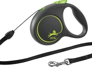 De Flexi Rollijn Black Design Cord Groen S 5 meter is een handige, stijlvolle looplijn met koord op rolmechanisme voor honden tot 12 kg. Deze nieuwe, zwarte uitvoering is stoer met een schattig tintje! De behuizing van de Black Design Flexi is zwart, met een groen Flexi-logo en de afbeelding van een hond. De lijn bestaat uit een stevig koord met musketonhaak op rolmechanisme, waardoor de hond meer ruimte heeft om te lopen. Met de knop bovenop kun je de lijn tijdelijk of permanent op een bepaalde lengte blokkeren. Een stijlvolle rollijn van de bekende Flexi-kwaliteit die de hond lekker veel bewegingsruimte biedt!