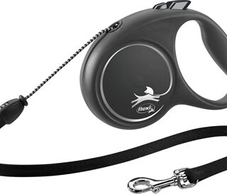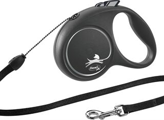De Flexi Rollijn Black Design Cord Zwart S 5 meter is een handige, stijlvolle looplijn met koord op rolmechanisme voor honden tot 12 kg. Deze nieuwe, zwarte uitvoering is stoer met een schattig tintje! De behuizing van de Black Design Flexi is zwart, met een zilver Flexi-logo en de afbeelding van een hond. De lijn bestaat uit een stevig koord met musketonhaak op rolmechanisme, waardoor de hond meer ruimte heeft om te lopen. Met de knop bovenop kun je de lijn tijdelijk of permanent op een bepaalde lengte blokkeren. Een stijlvolle rollijn van de bekende Flexi-kwaliteit die de hond lekker veel bewegingsruimte biedt!