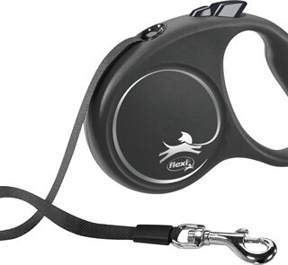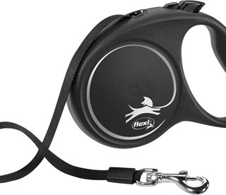 De Flexi Rollijn Black Design Tape Zwart M 5 meter is een handige, stijlvolle looplijn met band op rolmechanisme voor honden tot 25 kg. Deze nieuwe, zwarte uitvoering is stoer met een schattig tintje! De behuizing van de Black Design Flexi is zwart, met een zilver Flexi-logo en de afbeelding van een hond. De lijn bestaat uit een stevige platte band met musketonhaak op rolmechanisme, waardoor de hond meer ruimte heeft om te lopen. Met de knop bovenop kun je de lijn tijdelijk of permanent op een bepaalde lengte blokkeren. Een stijlvolle rollijn van de bekende Flexi-kwaliteit die de hond lekker veel bewegingsruimte biedt!