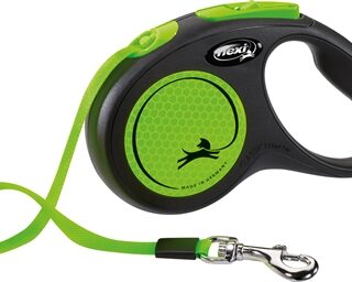 De Flexi Rollijn New Neon Tape Zwart / Groen M 5 meter is een handige, opvallende looplijn met band op rolmechanisme voor honden tot 25 kg. Deze nieuwe uitvoering springt er lekker uit! De behuizing van de Flexi is zwart, met details in een felle groene contrastkleur. De lijn bestaat uit een stevige platte band met musketonhaak op rolmechanisme, waardoor de hond meer ruimte heeft om te lopen. Met de knop bovenop kun je de lijn afremmen of terughalen. De zijkanten zijn reflecterend voor meer zichtbaarheid. Een handige, opvallende rollijn van de bekende Flexi-kwaliteit die de hond lekker veel bewegingsruimte biedt!