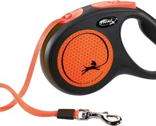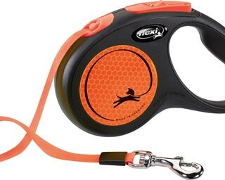 De Flexi Rollijn New Neon Tape Zwart / Oranje M 5 meter is een handige, opvallende looplijn met band op rolmechanisme voor honden tot 25 kg. Deze nieuwe uitvoering springt er lekker uit! De behuizing van de Flexi is zwart, met details in een felle oranje contrastkleur. De lijn bestaat uit een stevige platte band met musketonhaak op rolmechanisme, waardoor de hond meer ruimte heeft om te lopen. Met de knop bovenop kun je de lijn afremmen of terughalen. De zijkanten zijn reflecterend voor meer zichtbaarheid. Een handige, opvallende rollijn van de bekende Flexi-kwaliteit die de hond lekker veel bewegingsruimte biedt!