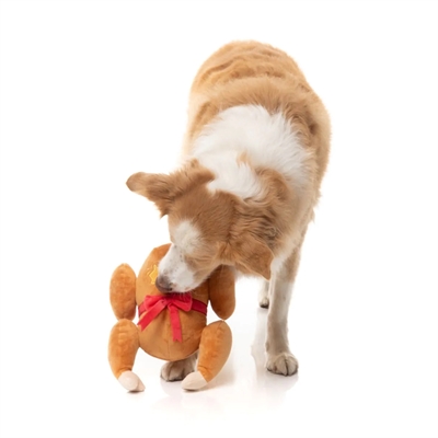De Fuzzyard Lets Get Basted Roast Kalkoen is een feestelijk hondenpeeltje in de vorm van een gebraden kalkoen met rode strik. Dit vrolijke speeltje is perfect om mee te spelen en te knuffelen. Gemaakt van zacht pluche en afgewerkt met speelse details zorgt deze mini-roast voor veel speelplezier tijdens de feestdagen.
