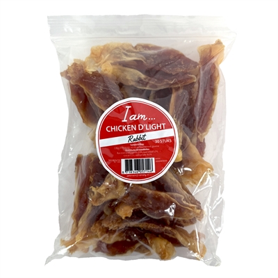 I Am Chicken D'Light Rabbit is een smakelijke hondensnack met een combinatie van kip en konijn. Deze malse stukjes zijn geschikt als beloning of als tussendoortje en hebben een hoog eiwitgehalte.