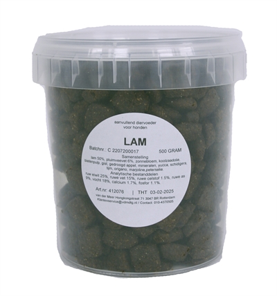 De I Am Lam Truffle 500 gr is een semi-moist hondensnack met lam en zalm uit 88% dierlijke ingrediënten, met vers lam en vrij van gluten. Een heerlijke, voedzame snack voor de hond die dicht bij de natuur blijft! De compacte I Am Lam truffels bestaan uit maar liefst 88% dierlijke ingrediënten, waarvan 50% vers lam. Het recept is aangevuld met onder andere heerlijke, natuurlijke ingrediënten zoals erwten, bietenpulp, gedroogde appel, yucca en diverse kruiden voor smakelijke, gezonde snack.