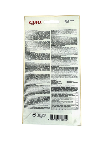 Inaba Churu Chicken/Cheese 4x14 gram is een romige aanvullende kattensnack van crème, rijk aan vocht en graanvrij. Katten hebben vaak de neiging om te weinig te drinken, wat tot dehydratatie kan leiden. Geef jouw kat daarom deze onweerstaanbare kattensnack van Churu! Deze heerlijke kattensnack bestaat uit een crème die in verdeelzakjes komt en rijk is aan vocht. Katten zijn gek op de romige structuur! Het heerlijke recept is graanvrij en bevat vitamine E. Zonder kunstmatige conserveringsmiddelen!