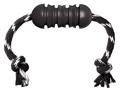 De Kong Extreme Dental Met Touw Zwart / Wit van 12 x 5 x 5 cm is zeer sterk hondenspeelgoed van duurzaam rubber, met katoenen touw voor interactief speelplezier Een ideaal speeltje om aan het kauwinstinct van jouw hond te voldoen en verveling tegen te gaan! Deze Extreme Dental is gemaakt van het sterkste, zwarte rubber van KONG zodat zelfs de meest enthousiaste kauwers plezier van dit speeltje hebben. Door de ronde, bot-achtige vorm is dit speeltje zeer aantrekkelijk kauwmateriaal voor jouw hond, dat ook de tanden helpt reinigen en het tandvlees masseert. Ook het touw, dat gemaakt is van 100% katoen, draagt bij aan het onderhouden van de tanden, en leent zich bovendien bijzonder goed voor apporteren, trekspelletjes en samen spelen met twee- en viervoeters! Goed voor urenlang speelplezier zonder verveling.