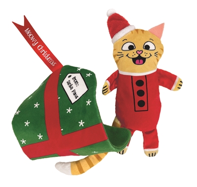 - 2-in-1, een pluche kat in een opgerolde kerstdeken van stof, uit elkaar te halen