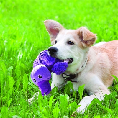 De Kong Shells Turtle Large is een hondenspeelgoed in de vorm van een knuffel met diverse structuren die bijdragen aan extra speelplezier en een gezond gebit. Deze leuke schildpad leent zich perfect om lekker te knuffelen door de zachte pluche delen, maar is door de bijzondere structuren op het schild ook leuk om mee te stoeien en te spelen. Het schild is zeer stevig en voorzien van flexible noppen, die bij het spelen helpen het gebit te verzorgen. Door de wrijving langs de tanden worden vuil, bacteriën en tandplak verwijderd en wordt het tandvlees gemasseerd. Voor meer aantrekkelijkheid is de schildpad voorzien van een pieper.
