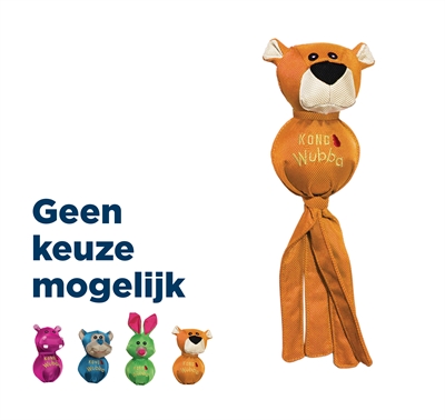 De KONG Wubba Ballistic Friends zijn schattige én sterke interactieve piep- en schudspeeltjes. Dankzij de slappe staarten zijn ze eenvoudig op te pakken en weg te gooien, wat ze perfect maakt voor trek- en apporteerspelletjes, zowel binnen als buiten. Het duurzame, versterkte nylon zorgt voor extra stevigheid, zodat je hond lang van dit speeltje kan genieten.