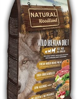 De Natural Woodland Wild Iberian Diet 10kg hondenvoer is goed verteerbare en complete hondenvoeding met vers vlees van wilde zwijnen zonder gluten en met een hoge voedingswaarde. Geef jouw hond een heerlijke maaltijd met de Wild Iberian Diet brokjes van Natural Woodland! Deze voeding bestaat uit goed verteerbaar en vers vlees van wilde zwijnen. Het bevat geen gluten of aardappelen. Deze maaltijd is hypoallergeen en geschikt voor honden van alle rassen en leeftijden.
