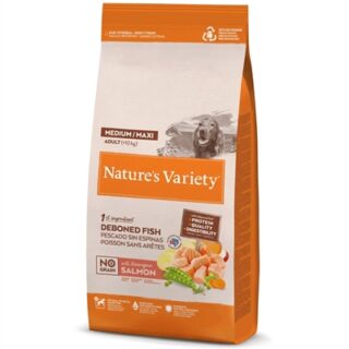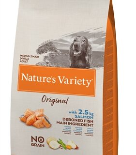 Nature's Variety Orginal Adult Medium/ Maxi Salmon No Grain is volledige dierenvoeding voor volwassen honden.