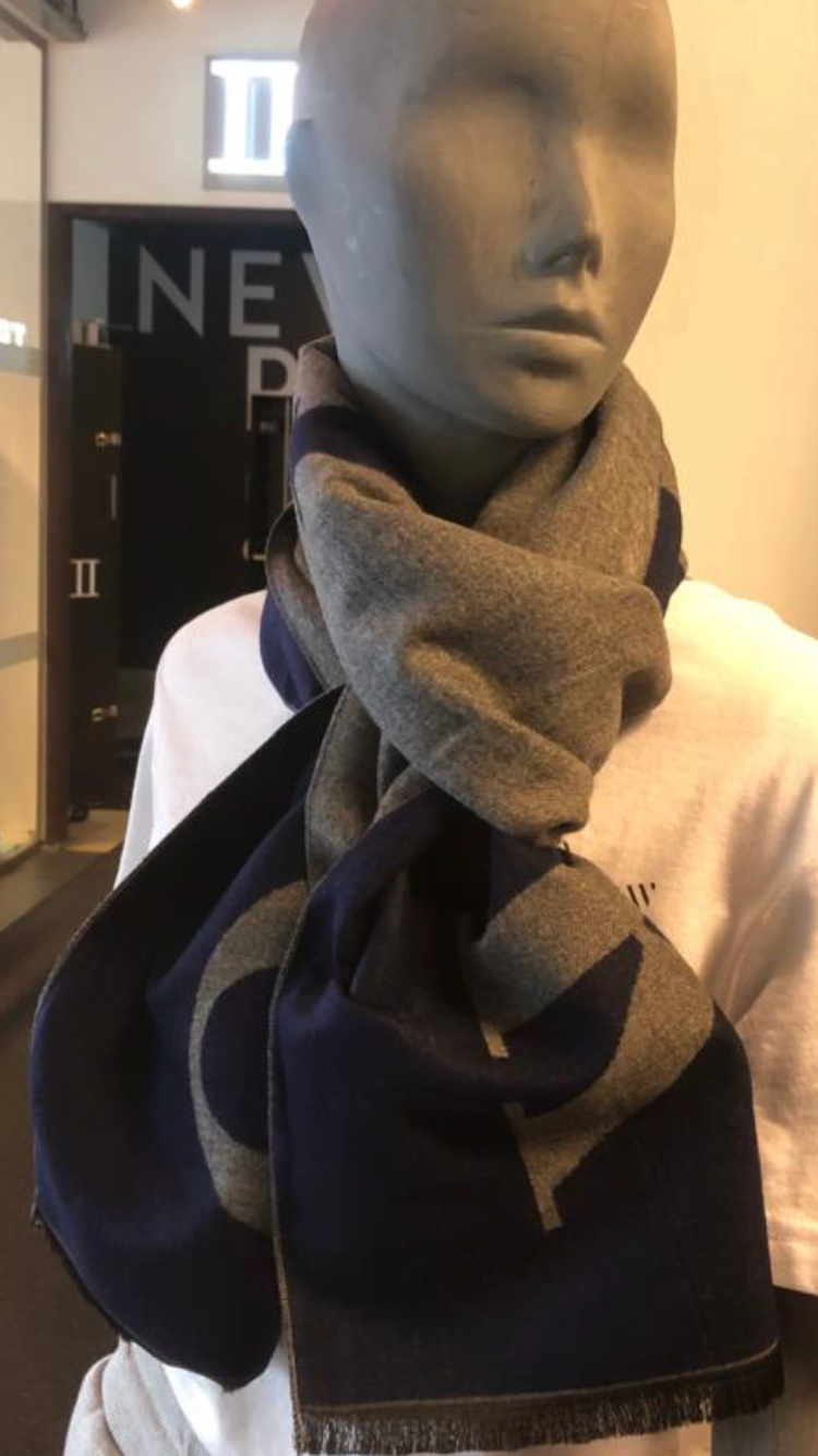 Deze sjaal is 1.80 meter lang en beschikbaar in de kleurencombinaties grijs/navyblue en grijs/claypink