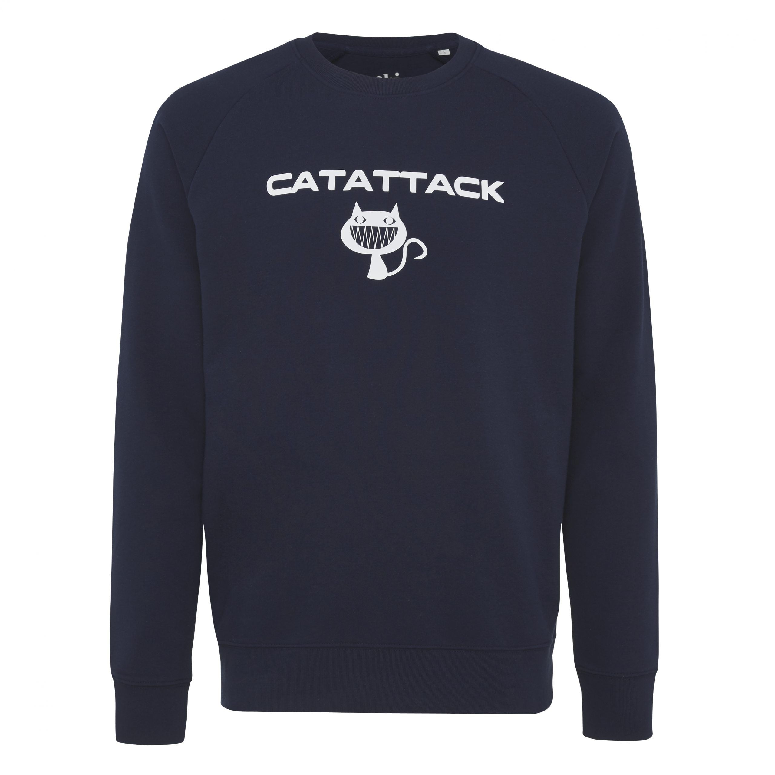 Deze sweater heeft de opdruk: CATATTACK met visual.