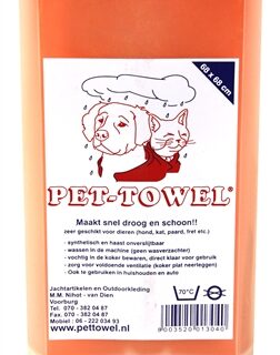 Geen gedoe meer met natte handdoeken! De PET-TOWEL, zeer geschikt voor het afdrogen van de hond. De Pet-Towel heeft een hoge vochtopname en wasbaar in de wasmachine tot ca. 70Cº. De handdoek is vochtig opgeborgen in speciale koker, direct klaar voor gebruik. Handig na training of regenachtige wandeling en ook zeer geschikt voor hondentrimsters. De levensduur van de handdoek is circa 5 jaar. In de zomermaanden ook te gebruiken voor "cooling down", door de handdoek licht vochtig over de hond te leggen.
