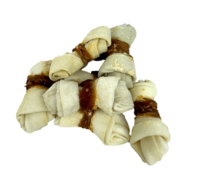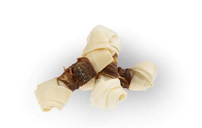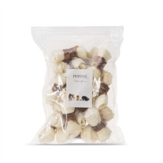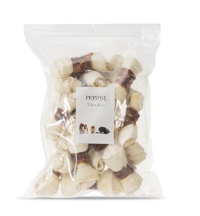 Het Petstyle Living Geknoopt Bot Wit Met Eend 10-11 cm 20 st is aanvullend voeder voor de hond, een smakelijke hondensnack van runderhuid omwikkeld met eend. Heerlijk om lekker op te kauwen en verveling tegen te gaan! Deze traktatie is gemaakt van runderhuid omwikkeld met gedroogd eendenvlees, waardoor het bot extra lekker wordt. Kauwen op runderhuid gaat verveling tegen en helpt bij het schoonhouden van het gebit, omdat de runderhuid bij het kauwen langs de tanden wrijft en zo tandplak helpt verminderen.