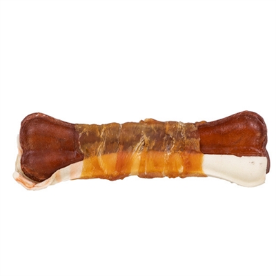 Petstyle Living Geperst Bot Multicolor Met Kip 16 cm is aanvullend diervoeder voor de hond, een smakelijke hondensnack van runderhuid omwikkeld met kip, tegen verveling en voor een goede mondhygiëne. Dit geperste bot is de perfecte traktatie voor jouw hond! Het bot is gemaakt van runderhuid en omwikkeld met smakelijke gedroogde kip, in twee verschillende kleuren. Lekker kauwen op dit bot gaat verveling tegen en helpt het gebit schoon en gezond te houden: door het kauwen wrijft de runderhuid langs de tanden en verwijdert zo vuil en tandplak van de tanden.