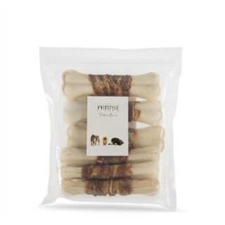 Het Petstyle Living Geperst Bot Wit Met Eend 10 cm 20 st is aanvullend voeder voor de hond, een smakelijke hondensnack van runderhuid omwikkeld met eend. Heerlijk om lekker op te kauwen en verveling tegen te gaan! Deze traktatie is gemaakt van runderhuid omwikkeld met gedroogd eendenvlees, waardoor het bot extra lekker wordt. Kauwen op runderhuid gaat verveling tegen en helpt bij het schoonhouden van het gebit, omdat de runderhuid bij het kauwen langs de tanden wrijft en zo tandplak helpt verminderen.