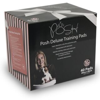 De Posh Puppy Training Pads 60X90 cm 40 st zijn absorberende trainingspads om op een gemakkelijke en hygiënische manier aan de zindelijkheidstraining van jouw pup te werken. Maak het thuis trainen simpel en gemakkelijk met deze trainingpads. De pads zijn super absorberend en sluiten vocht en geurtjes in. Zo blijft jouw vloer schoon en droog. Perfect om de zindelijkheid van je pup mee te trainen.