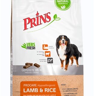 Prins Procare Lam/Rijst 3 kg is hypoallergeen hondenvoer voor middelgrote en grote hondenrassen vanaf 1 jaar en ouder. ProCare Lamb & Rice is een geperste voeding, vervaardigd met hoogwaardig lamsvlees. Hierdoor is de voeding ideaal voor honden die gevoelig zijn voor andere eiwitbronnen. Daarbij bevatten de brokjes duurzame algenolie, een milieuvriendelijke bron van essentiële omega 3-vetzuren. Bovendien dragen vezels afkomstig van cichorei en FOS bij aan een gebalanceerde darmflora.