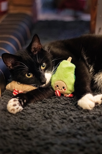 - Schattig kattenspeelgoed in de vorm van een avocado en croissant