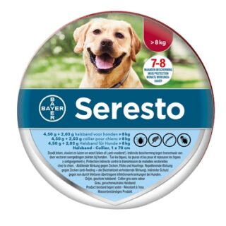 De Seresto Teken- En Vloeienband Hond S is een halsband voor kleine honden ter bestrijding van vlooien en teken.
