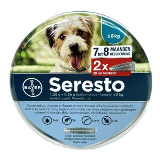 De Seresto Teken- En Vloeienband Hond S is een halsband voor kleine honden ter bestrijding van vlooien en teken.