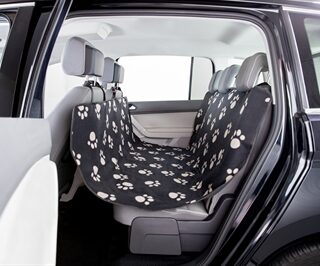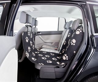 Trixie autodeken pootprint nylon / fleece zwart / beige