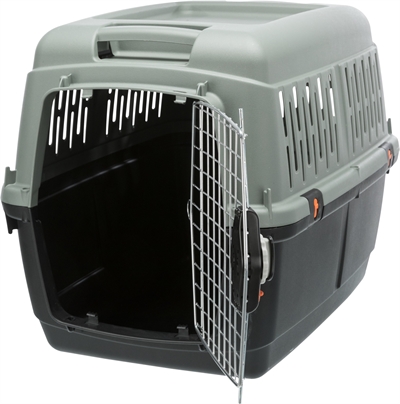 De Trixie Be Eco Gerecycled Vervoersbox Giona Grijs/Antraciet 50X70X51 cm met IATA-set is een duurzame transportbox voor hond of kat, geschikt voor de meeste vliegreizen. Deze mooie vervoersbox voor hond of kat is superieur op vele vlakken: de Giona-vervoersbox is om te beginnen eco-friendly, daar hij is gemaakt van gerecycled kunststof. Daarnaast wordt deze box geleverd met IATA-set, en wordt hij door bijna alle luchtvaartmaatschappijen geaccepteerd voor vliegreizen (let op: vraag dit altijd na bij jouw luchtvaartmaatschappij!). De kunststof box is voorzien van een metalen deur met vergrendelbare snapsluitingen voor meer veiligheid en heeft tegens een handvat waardoor je de box voort kunt trekken wanneer deze van wielen wordt voorzien. De wielen zijn los verkrijgbaar (Trixie artikel 39899).