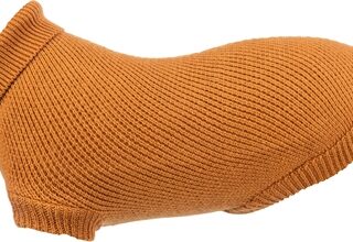 De Trixie Citystyle Hondentrui Berlin Roest 24 cm is een warme trui met kraag en beenlussen voor de hond. Jouw hond blijft lekker warm tijdens koudere dagen! De Citystyle Berlin trui is gemaakt van een mix van katoen, wol en polyamide en heeft een mooie slim-fit. Door de beenlussen blijft de trui mooi zitten. De trui heeft een lekkere kraag en gebreide look. De trui is te wassen op 30 graden Celsius.