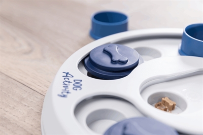 Het Trixie Dog Activity Intelligentiespel Flip & Fun van 23 x 23 cm is een bordspel voor de hond waar jouw dier met verschillende technieken zijn beloning te pakken moet zien te krijgen. Het spel is gemaakt van kunststof en voorzien van een kegel als stopper, diverse kommetjes en schuifdeksels. Door de kegel als stopper te gebruiken kan de moeilijkheidsgraad worden opgeschroefd. Door de slipvaste rubberen ring zal het speeltje niet verschuiven tijdens het spelen. Bovendien komt het spel met een handleiding met tips en handigheidjes om de training te optimaliseren.