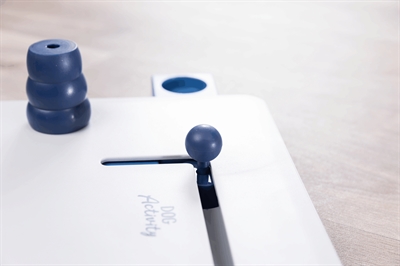 Verstop wat lekkers onder de kegels en in de laatjes. Jouw hond moet de kegels uit de gaten trekken, laatjes openen door aan touwtjes te trekken of de hendel verschuiven.